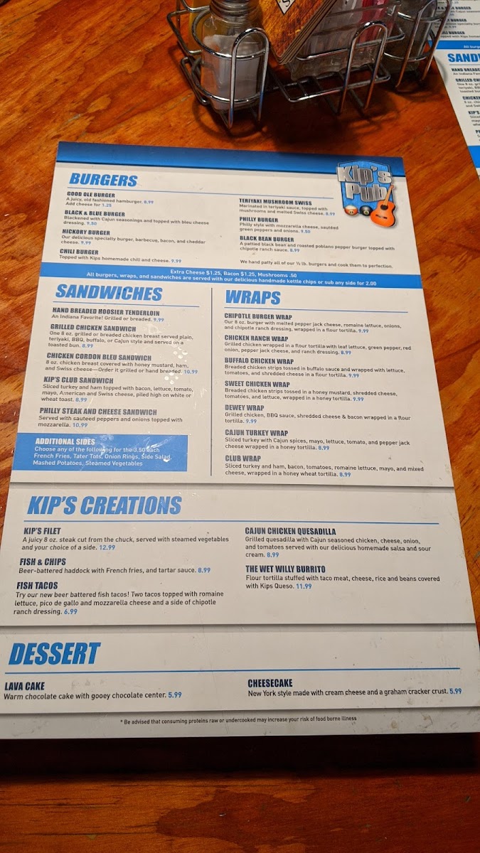 Welcome to Kip's Pub, a hidden gem nestled at 9546 Allisonville Rd in Indianapolis. This cozy pub strikes the perfect balance between vibrant atmosphere and delicious cuisine. Their menu features an enticing array of salads like the hearty Chef Salad and classic Chicken Caesar Salad, as well as mouthwatering entrees like the succulent Kip’s Filet and crispy Fish & Chips.